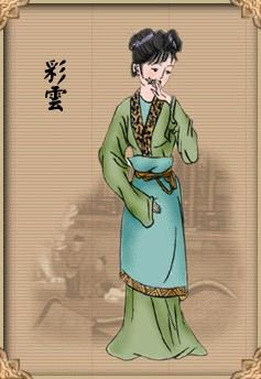 王夫人的大丫头。贾环曾为她从芳官处讨些蔷薇硝来,彩云打开一看才知原来是茉莉粉,赵姨娘非要找芳官算帐,彩云死劝不住,只得躲入房内。后来,她禁不住赵姨娘的再三央求,从王夫人柜子里偷了些东西给贾环,被玉钏儿发觉。平儿为了不使探春难堪,要宝玉应下拿东西的名儿,彩云回来告诉赵姨娘。贾环起了疑心,认为她和宝玉好,并把彩云私赠之物都拿出来,照著她的脸摔了过去。彩云急得赌咒起誓,百般解说。贾环还是不信,气得彩云哭了个泪乾肠断,把东西全扔到河里。后来她染了无医之症。