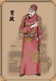 贾政,字存周,工部员外郎,贾母次子。他是儒家统治思想的化身。儿子贾宝玉的叛逆思想使他大为不满,动不动就骂他“畜生”、“该死的奴才”。曾亲自抡起大板子朝宝玉狠命打去,随后还要用绳子来勒死,因贾母及王夫人的拦阻,才未勒死宝玉。他是个伪君子的典型,满口仁义道德,宽柔待下,而实际上他对奴隶的训斥却是∶“等我闲一闲,先揭了你的皮!”外甥薛蟠打死了人,他公然徇情枉法;对贪赃暴虐的贾雨村,他却最是热衷与其来往;外放江西粮道时,在他的纵容下,手下横行不法,公然纳贿。他无能又孤独,儿女亲属相聚谈笑,他一出现就会让大家敛声屏息,弄得索然无味,致使贾母也不得不“撵他出去休息”。当锦衣军来抄检贾府时,他只会“跪在地下磕头”,“心惊肉跳”跺脚长叹而已。