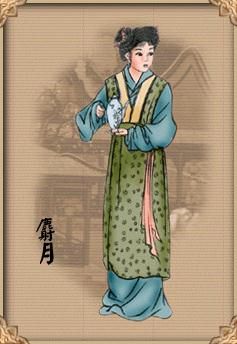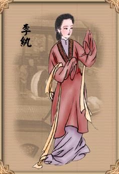李纨,字宫裁,贾珠之妻,儿子贾兰。她出身金陵名宦之家,父亲李守中曾为国子祭酒。她从小受父亲“女子无才便是德”的教育,以认得几个字,记得前朝几个贤女便了,每日以纺织女红为要。贾珠不到二十岁就病死了。李纨就一直守寡,虽处于膏粱锦绣之中,竟如“槁木死灰”一般,一概不闻不问,只知道抚养亲子,闲时陪侍小姑等女红、诵读而已。她是个恪守封建礼法的贤女节妇的典型。