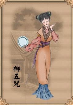厨役之女,因家中排第五,故名柳五儿。五儿生得与平儿、袭人、鸳鸯模样相类。她和芳官是好朋友,有一天她到怡红院去给芳官送茯苓霜,回来路上被林之孝家的发现,怀疑她是贼。王熙凤要把她打四十大板后,立刻交到庄子上,或卖或配人,幸亏平儿相助,软禁了一夜就放了。后成了宝玉的丫环,宝玉甚是喜欢,把她当作晴雯。