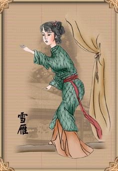 林黛玉从苏州家里带来的小丫头。宝玉成亲时,她是扶新娘的,致使宝玉误以为林黛玉是新娘,后配了个小厮过活去了。