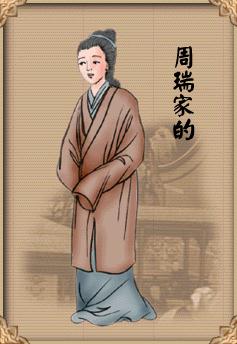 王夫人的陪房。在荣国府里,周瑞家的管太太奶奶们出门的事。丈夫周瑞管宁府地租庄子银钱的出入。刘姥姥一进荣国府就靠她给引的路,后因犯了事被撵了出去。