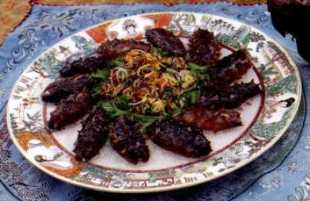 海参体制柔软,生长在水流缓慢、海藻丰富的细沙海底和岩礁底,海参品种很多,可供食用的约40余种,海参是高蛋白、低脂肪的食品,它含有人体必需的多种氨基酸、钙、铁、磷等物质。海参味碱性温,入心、肾、脾、肺四经,可增强体质,抗衰老。「乌龙戏球」用海参为主料配以鸡茸等,营养丰富。味道鲜美。